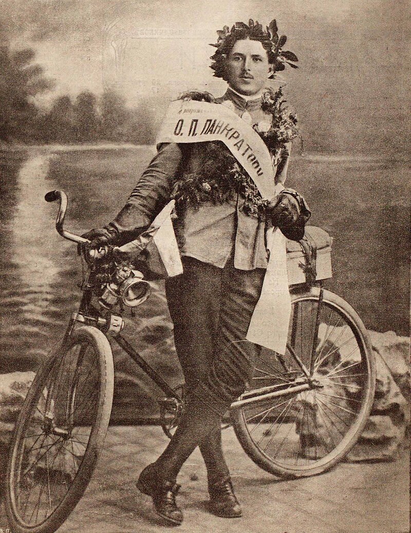 Онисим Панкратов прославился тем, что совершил первое российское кругосветное путешествие на велосипеде Gritzner. Он начал свой путь в Харбине летом 1911 года, преодолел тысячи километров сибирского бездорожья на тяжело нагруженном багажом велосипеде и в ноябре достиг Петербурга. Добравшись до Берлина, он понял, что первоначально намеченный им прямой маршрут уже выполнен другими велосипедистами и воспользовался намеченным за 20 лет до того международным спортивным съездом в Берлине круговым маршрутом по Европе, напоминающим цифру «8».