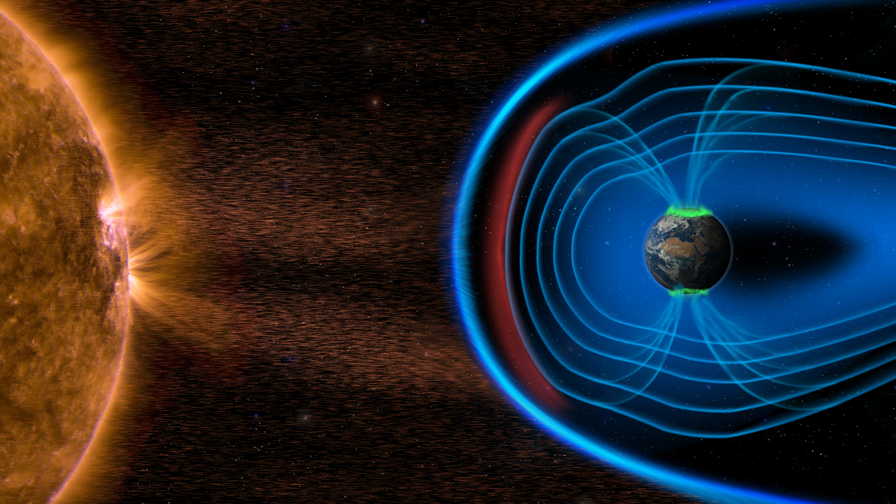 Земля защищена от этих процессов магнитосферой — областью движения внешнего жидкого ядра Земли, состоящим в основном из расплавленного железа. Это естественный щит, который защищает нашу планету от солнечных вихрей, столкновения с метеоритами.