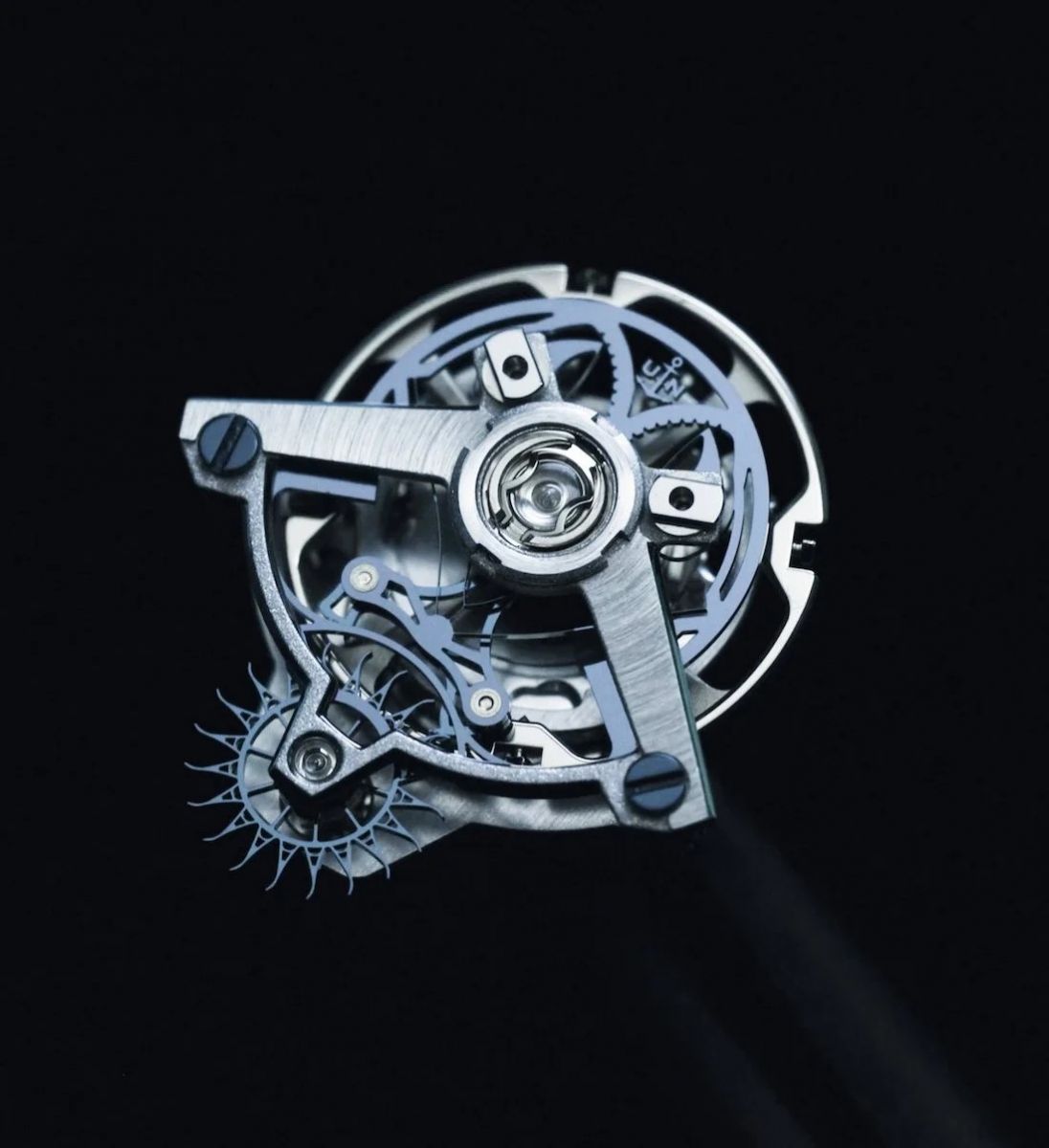 Напомним, что турбийон —- это сложное устройство, компенсирующее влияние гравитации на точность хода часов. В Free Wheel Maillechort турбийон установлен на керамических шарикоподшипниках, которые обеспечивают плавное и бесшумное вращение. Механизм защищает купол, выточенный из цельного блока сапфирового стекла. Прозрачное, но прочное стекло обеспечивает беспрецедентный обзор плавающих механизмов на 360 градусов.
