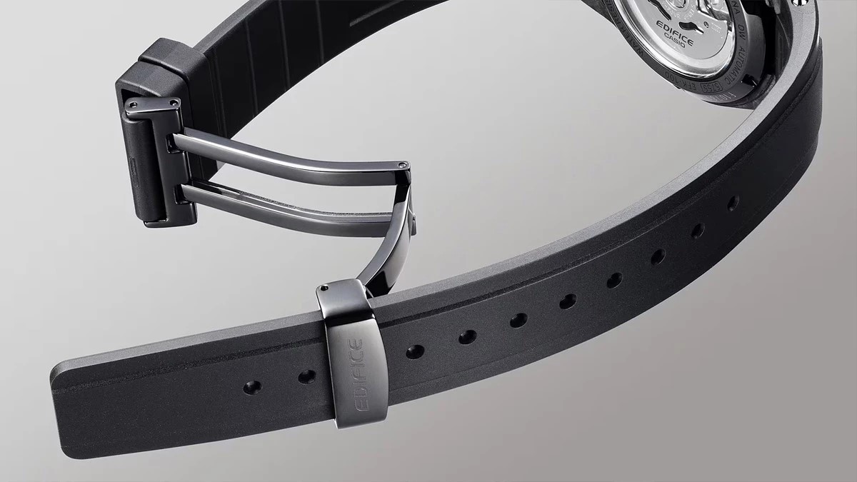 Исторический релиз 2025 года: Casio Edifice EFK-100 — первые механические часы бренда с карбоновым корпусом и полимерным ремешком. Модель отличается темным циферблатом из кованого карбона под сверхпрочным сапфировым стеклом. Внутри — 24-каменный механизм с частотой 21600 колебаний в час, 40-часовым запасом хода.