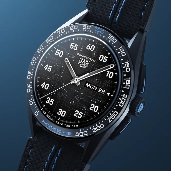 Корпус часов выполнен из титана, что делает их легкими и прочными, а безель с тахиметрической шкалой позволяет измерять скорость. Циферблат часов выполнен в стиле приборной панели Porsche Taycan, с яркими акцентами и четкой индикацией. Connected Watch Special Edition — не только стильный аксессуар. С 2015 года TAG Heuer развивает сегмент роскошных смарт-часов, модель TAG Heuer Connected Caliber E4 — Porsche Edition из категории умных девайсов. Часы позволяют владельцам новых моделей Porsche получить доступ к информации о своем автомобиле эксклюзивным wellness приложений в реальном времени. В число совместимых моделей входят Panamera (модели G2 II, начиная с 2022 г.), Panamera (G2), 911 (модели 992, начиная с 2022 г.), 911, Cayenne (модели E3, начиная с 2022 г.), Cayenne (E2 II), 718, Macan II/III, Macan, Taycan.
