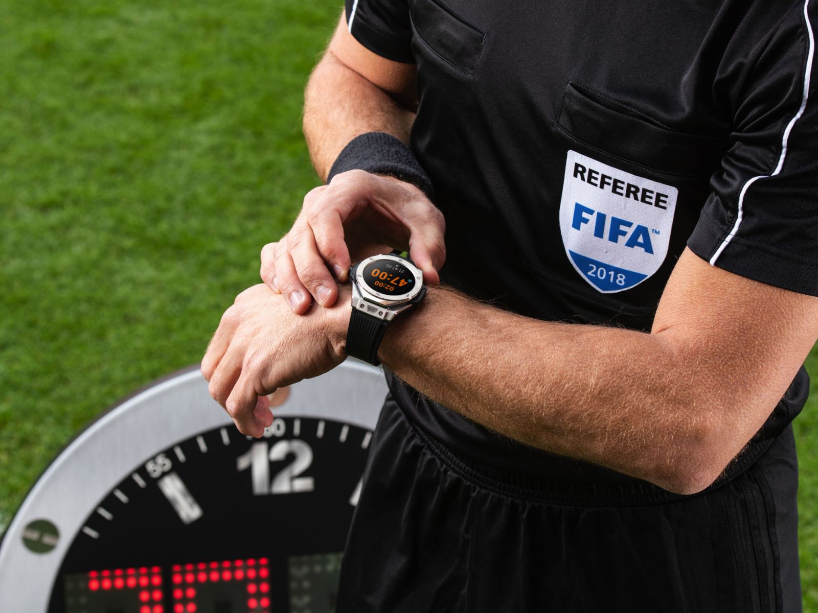 Big Bang Referee 2018 FIFA World Cup Russia — смарт-часы, выпущенные в честь Чемпионата мира по футболу 2018 года, проходившего в России. По безелю часов нанесены флаги государств, которые приняли участие в ЧМ-2018, также устройство можно кастомизировать, сменив ремешок в цвет флага своей страны. Набор дополнительных функций впечатляет: акселерометр, микрофон, датчик наклона, датчик вибраций, гироскоп, NFC, GPS. Поскольку устройство предназначено в первую очередь для футбольных судей, часы оснащены функцией уведомлений о ходе матча: забитых мячах, количестве желтых и красных карточек и так далее. Помимо судейского состава шанс приобрести знаковые часы получили 2018 человек по всему миру.