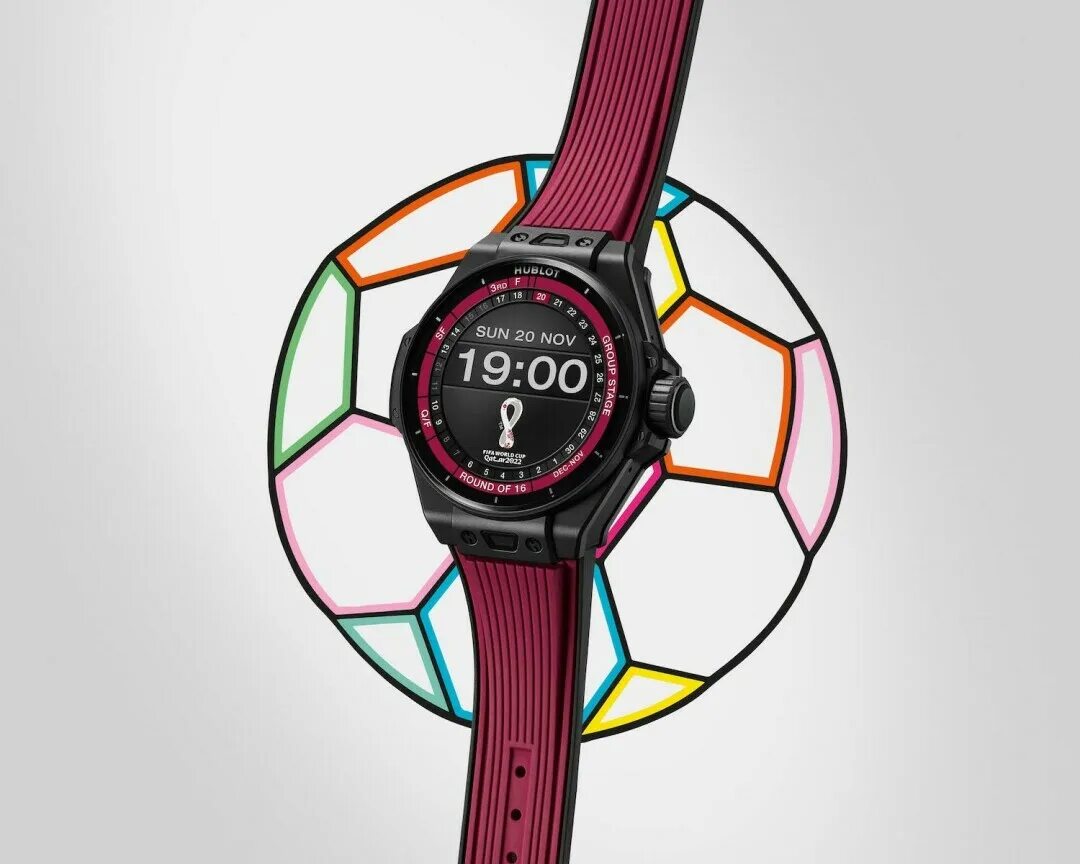 Big Bang e FIFA World Cup Qatar 2022 — смарт-часы, посвященные Чемпионату мира по футболу 2022 года в Катаре. Циферблат часов дополнен шкалой, разделенной на пять секций: первый и второй таймы, перерыв между и добавочное время в каждом из них. С этим устройством следить за ходом игры стало еще проще! Когда гол забит, на часах включается анимационный ролик матча с именем игрока, а на соответствующей отметке минутной шкалы появляется футбольный значок. Каждый удар пенальти отмечается зелёным или красным в зависимости от его результата. После завершения игры появляется анимация с окончательным счетом. Владелец часов может заново просмотреть события игры, перематывая временную шкалу по периметру циферблата посредством вращения заводной головки. Часы выпущены лимитированной серией из 1000 экземпляров, 129 из которых достались судьям, обслуживающим чемпионат.