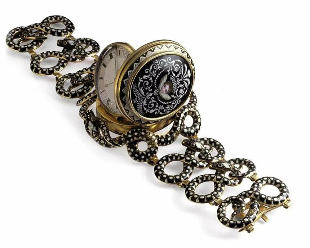 Первое упоминание о наручных часах относится к 1571 году. Роберт Дадли, граф Лестер, преподнес в подарок английской королеве Елизавете I богато украшенный бриллиантами и жемчугом браслет с часами. В то время наручные часы так и называли – браслетами (wristlet).