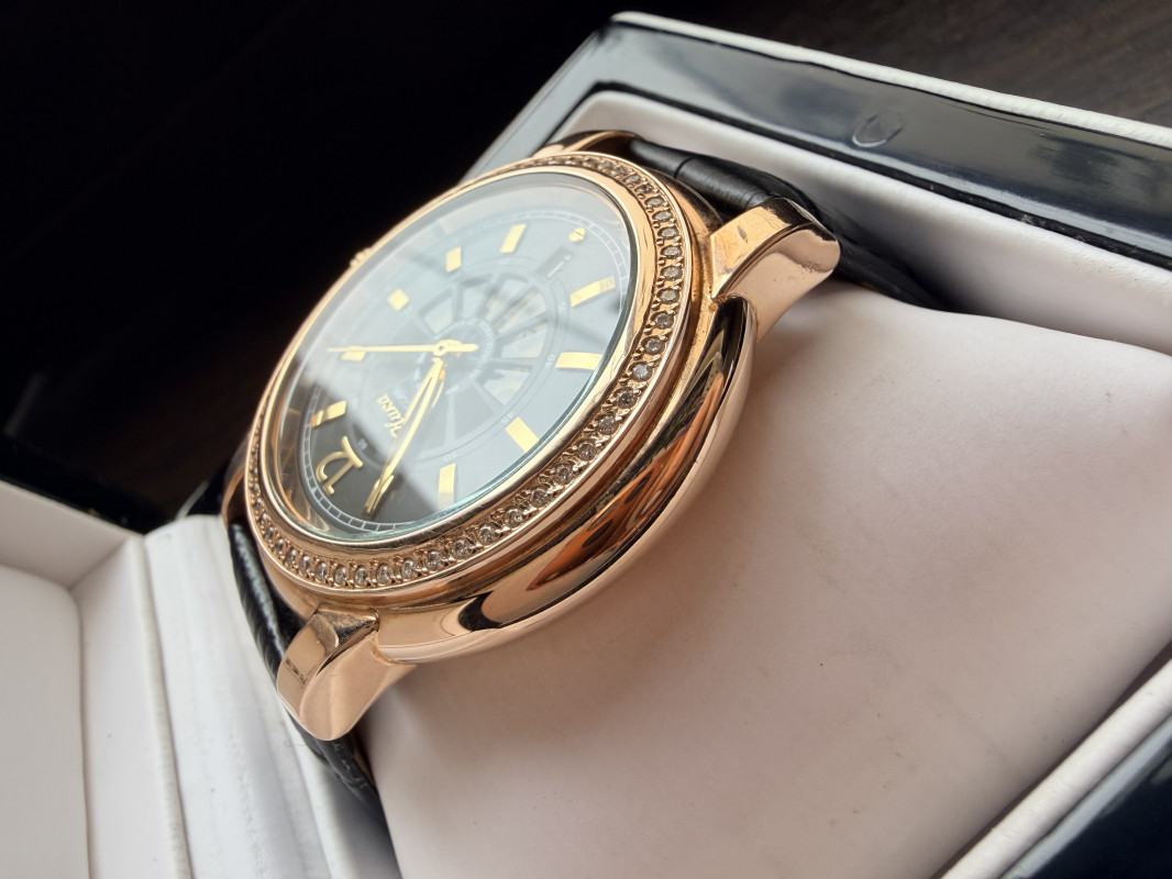 Часы в идеальном рабочем состоянии, без царапин и сколов по стеклу и корпусу, кожаный ремешок без следов эксплуатации.