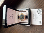 Коробка, паспорт в комплекте. Также в комплекте кейс для автоподзавода (работает от сети или от батареек, часы вращаются), в нём рекомендуется хранить часы, если они не эксплуатируются продолжительное время.